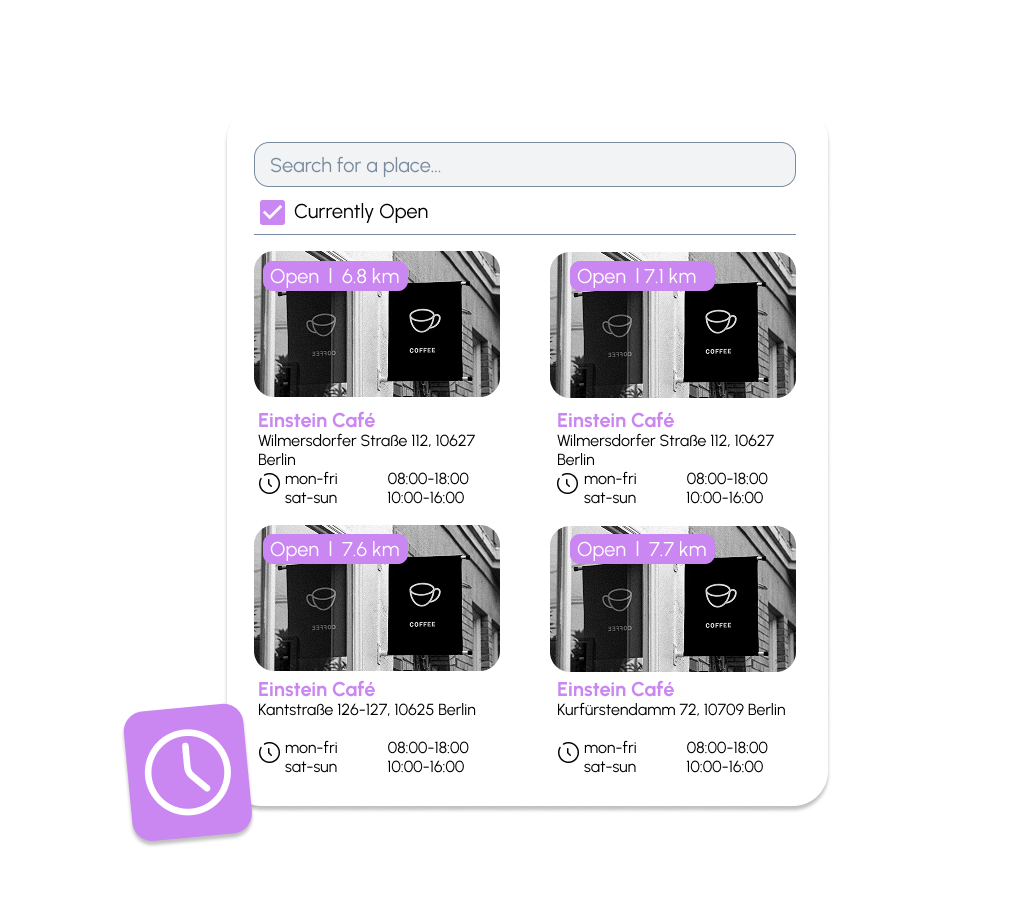 Show each store’s opening hours and offer a live ‘Open Now’ filter for quick access to currently open locations.